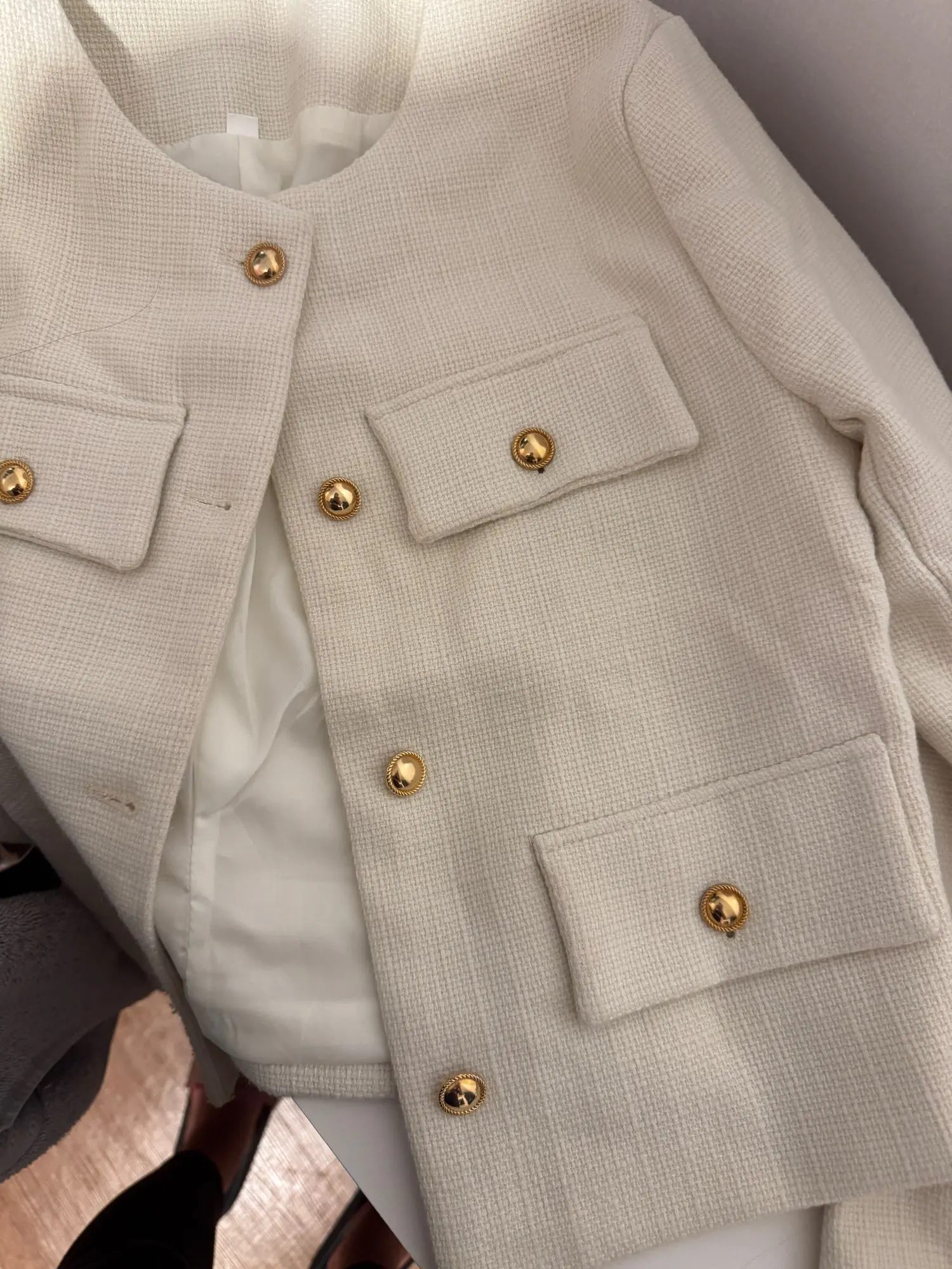 Elevate your everyday style with this chic cropped tweed jacket, combining timeless sophistication with modern flair for a truly versatile piece that complements any wardrobe.
