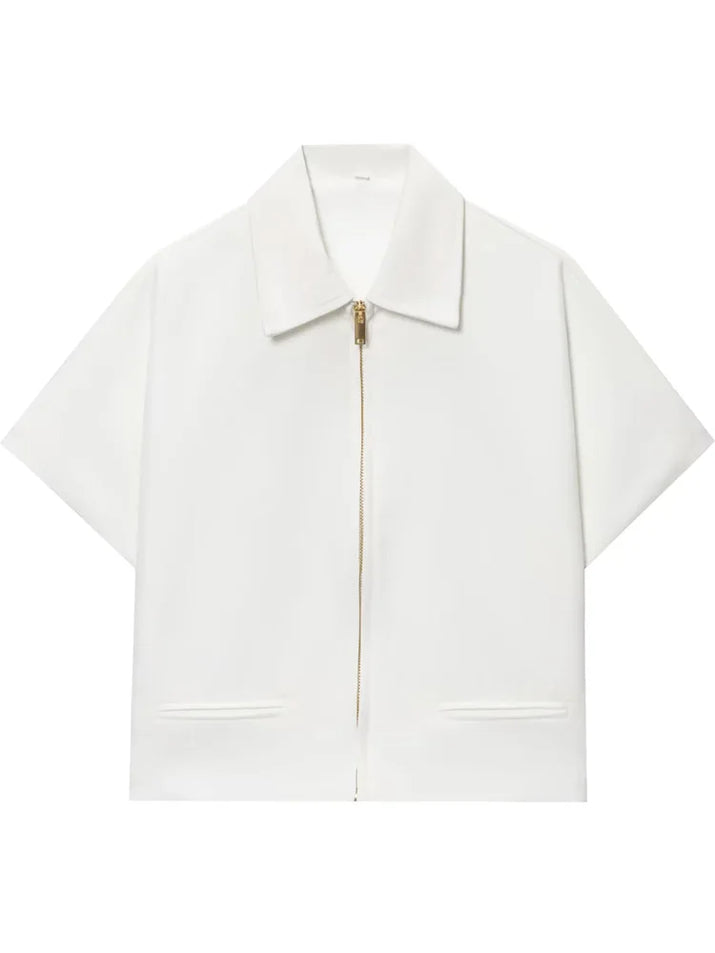 Women’s Cropped Varsity Jacket – Short Sleeve Zip-Up Summer Outerwear