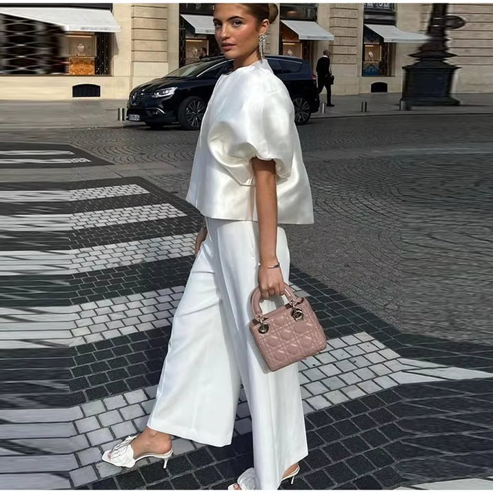 Elegant Satin Lantern Blouse – Women’s Loose Ruffle Top