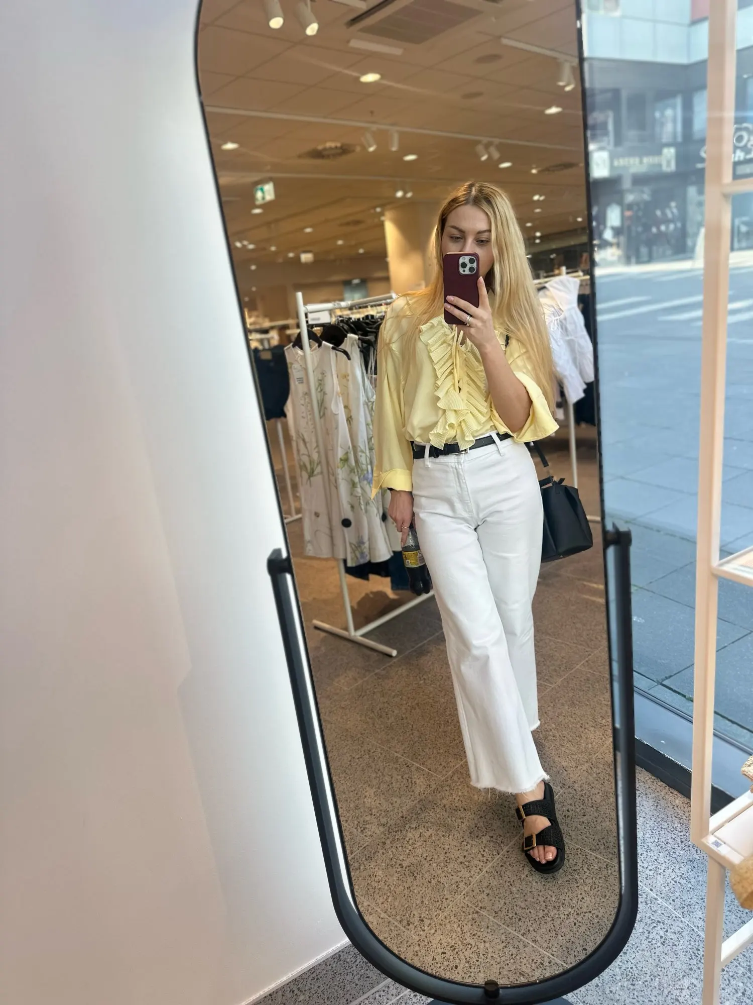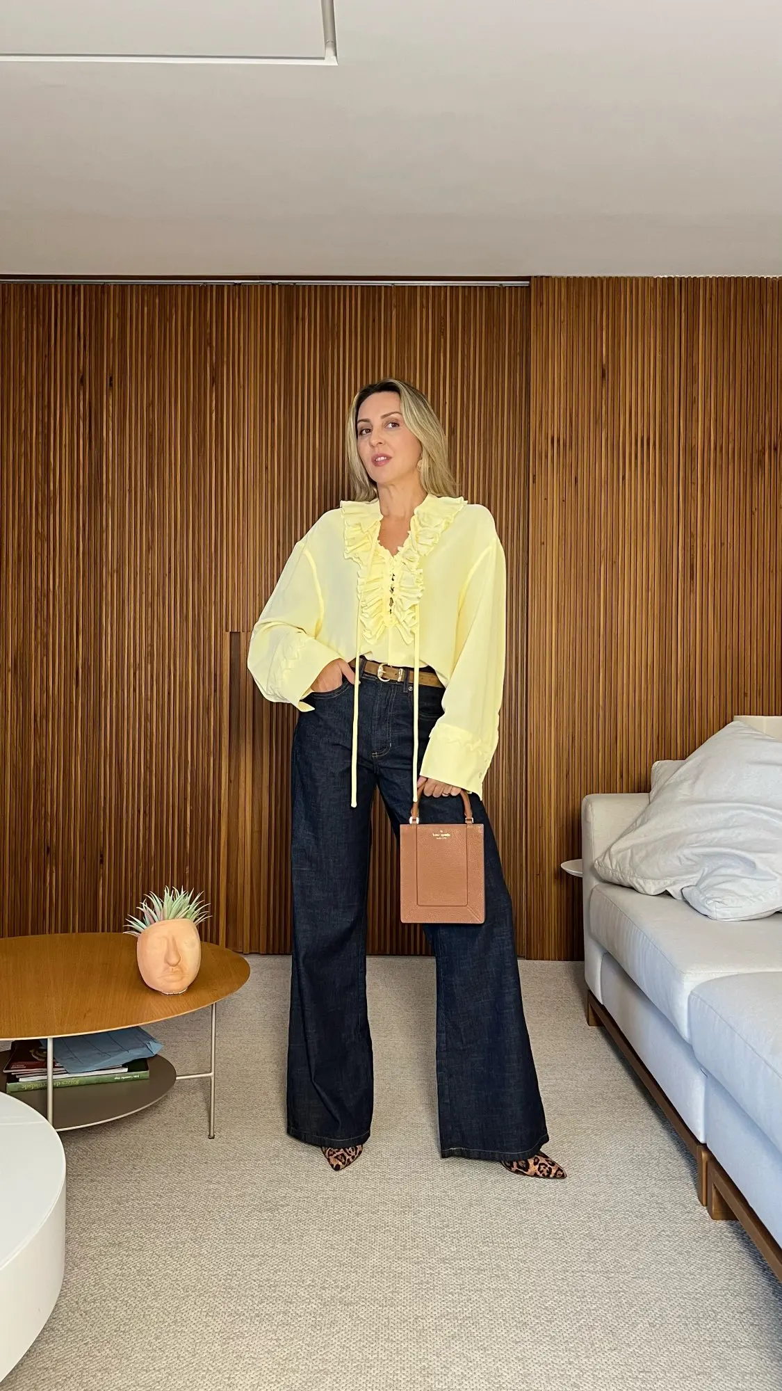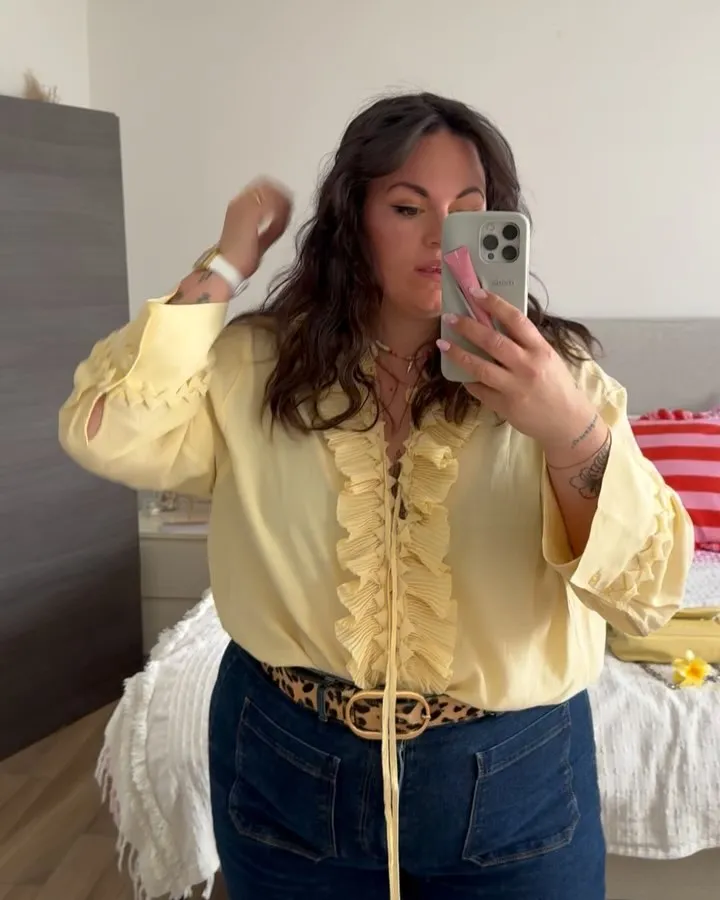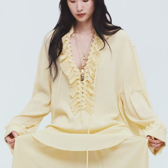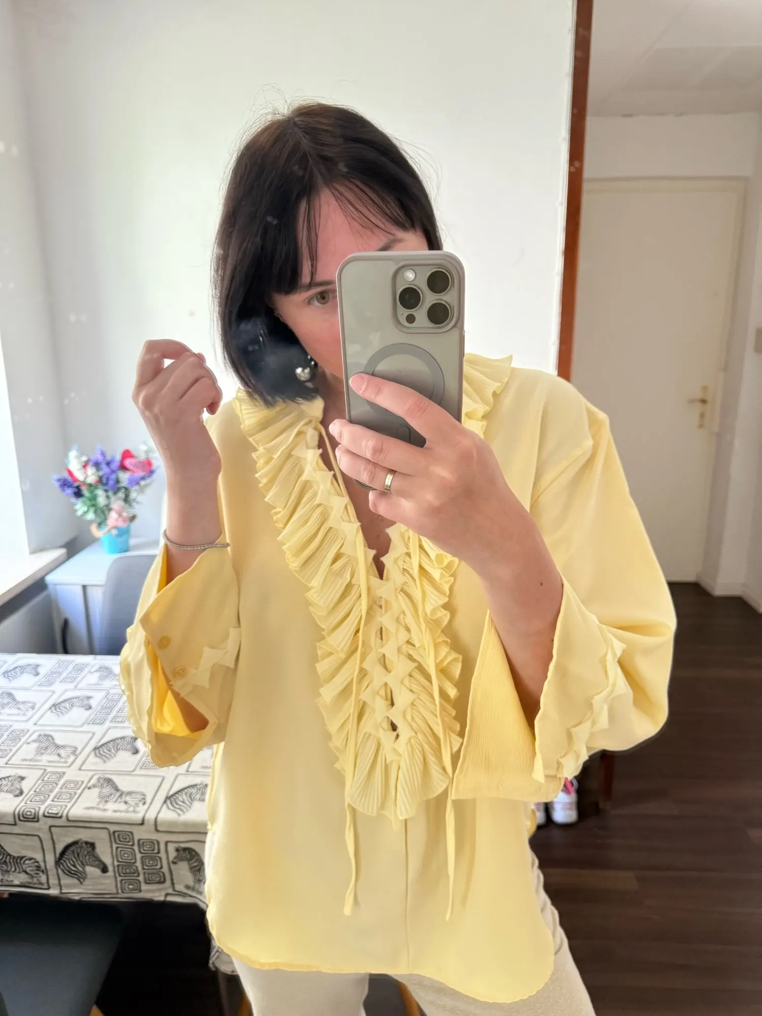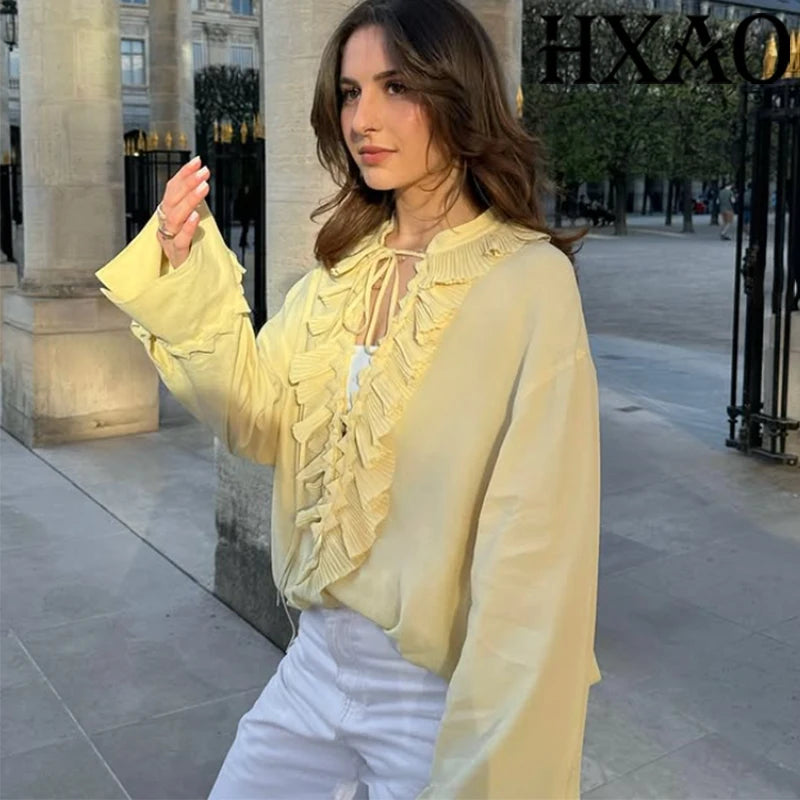 Ruffle Tunic Blouse Women – Long Sleeve Yellow Lace Top