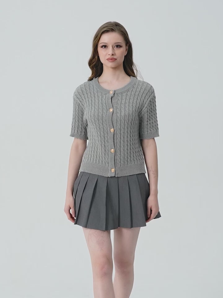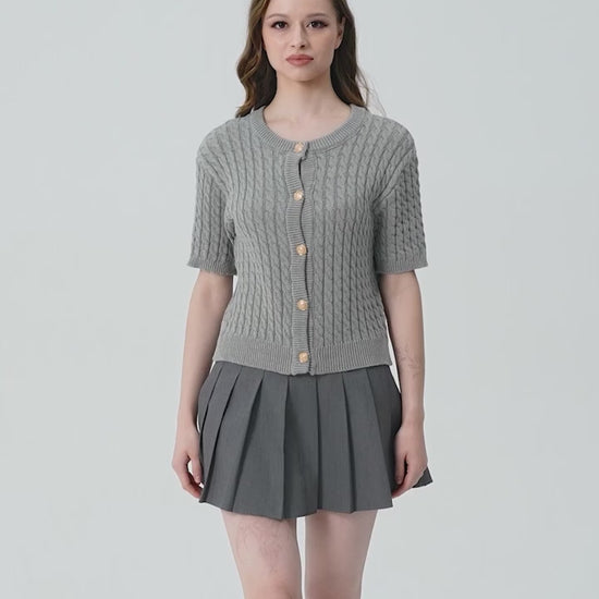 Solid Color Knit Cardigan – Short Sleeve Slim Sweater for Women
